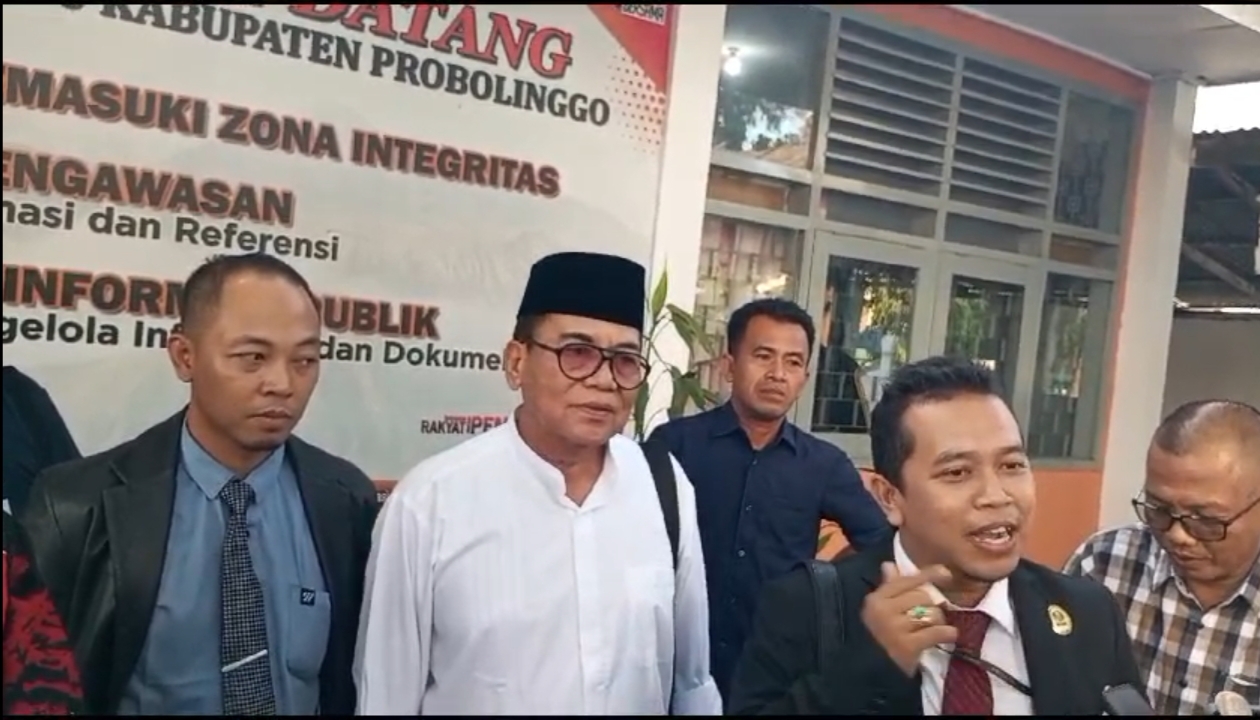 Cawabup Probolinggo, Abd Rasit (kopiah) didampingi kuasa hukumnya memberikan keterangan Pers seusai menghadiri undangan Bawaslu